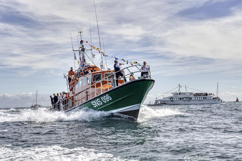 Le canot de sauvetage, pendant la bénédiction de la mer.Les invités à bord du canot.Les quais de Sauzon.Le stand des Sauveteurs en MerLe stand SNSM, à l'arrivée des équipages de la Route de l'Amitié.