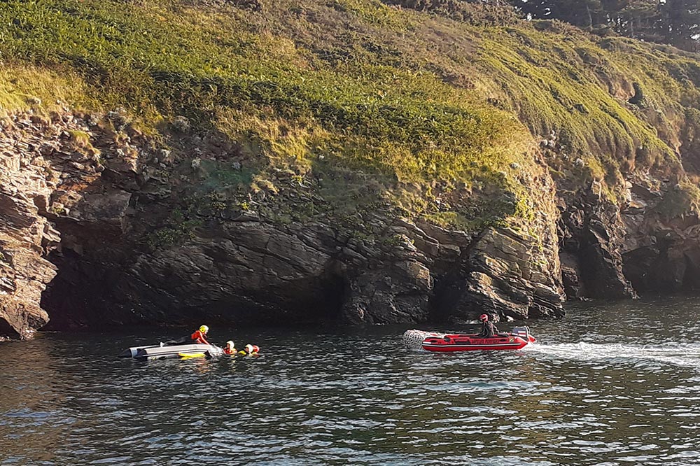 C'est en fin d'après-midi à Sauzon que le canot de sauvetage a retrouvé le semi-rigide des pompiers pour un exercice de secourisme sur l'eau.