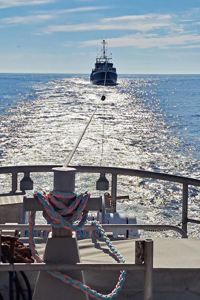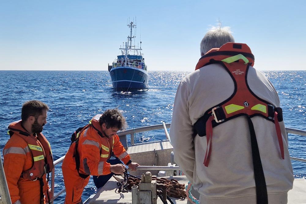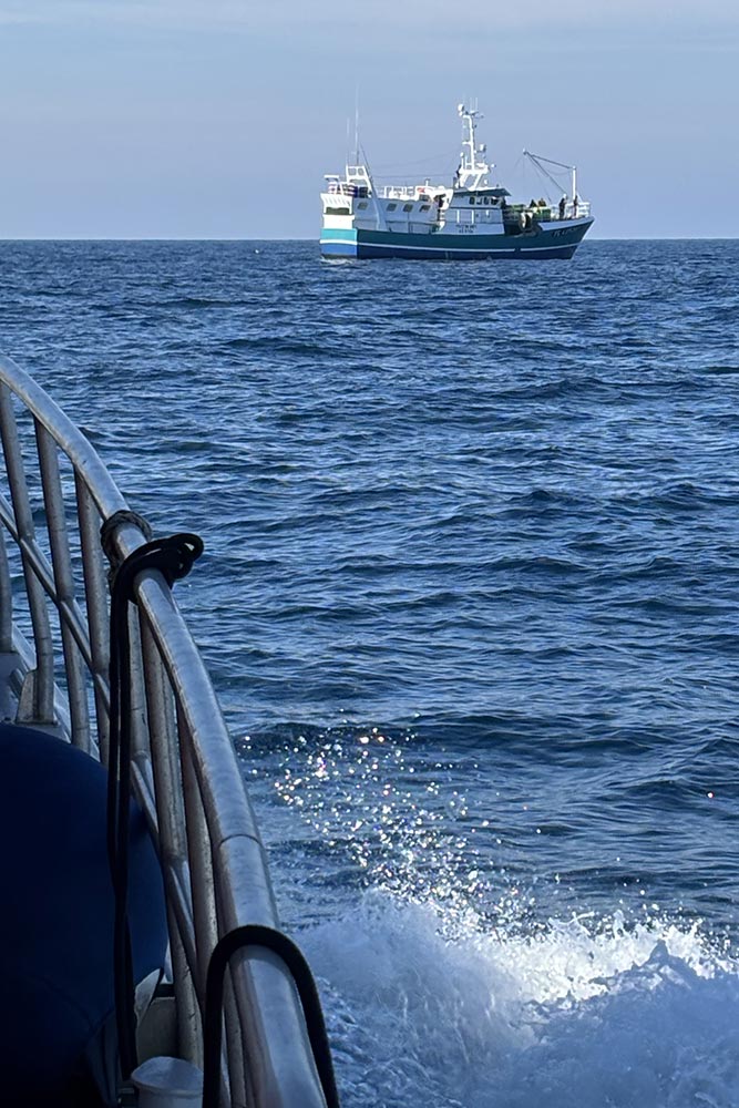 12h16, le canot appareille et arrive en vue du fileyeur une heure 15 plus tard.