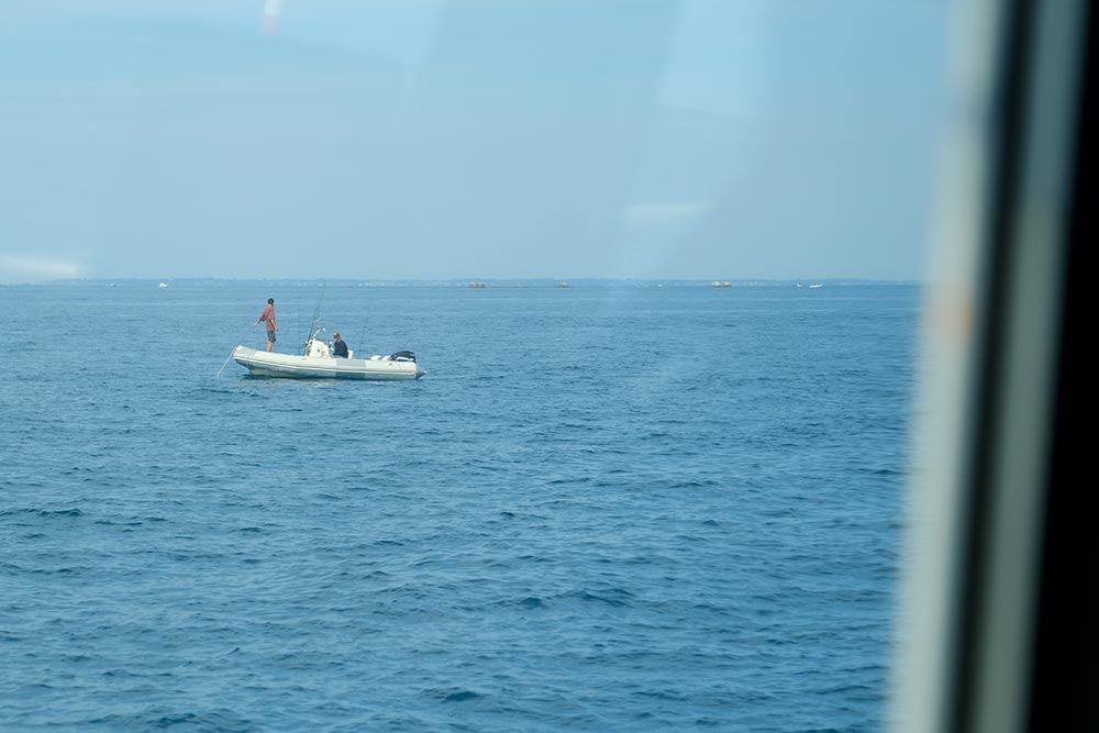 Deux hommes partis à la pêche au bar avec leur semi-rigide vers le phare des Grands Cardinaux, au sud-est d'Hoëdic, veulent remettre leur moteur en marche, mais après plusieurs tentatives et une recherche de la panne, rien n'y fait, le moteur reste muet.
