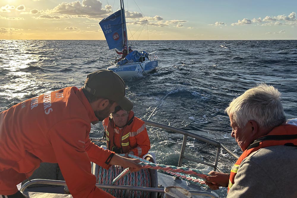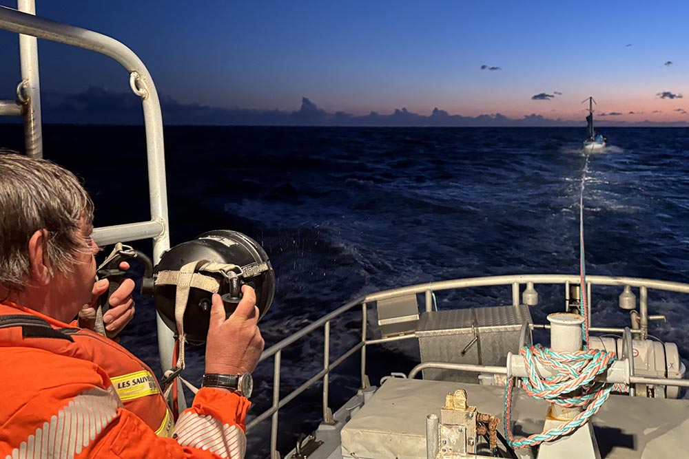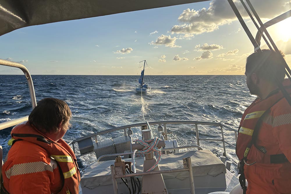 Prévenu dans l'après-midi, le canot de sauvetage Belle Isle, déjà en intervention, ne peut appareiller de Palais qu'à 18 heures, et fait route aussi vite que possible dans une mer de vent très hachée vers la position du voilier, à une vingtaine de miles (37 km) au sud-ouest de Belle-Île.